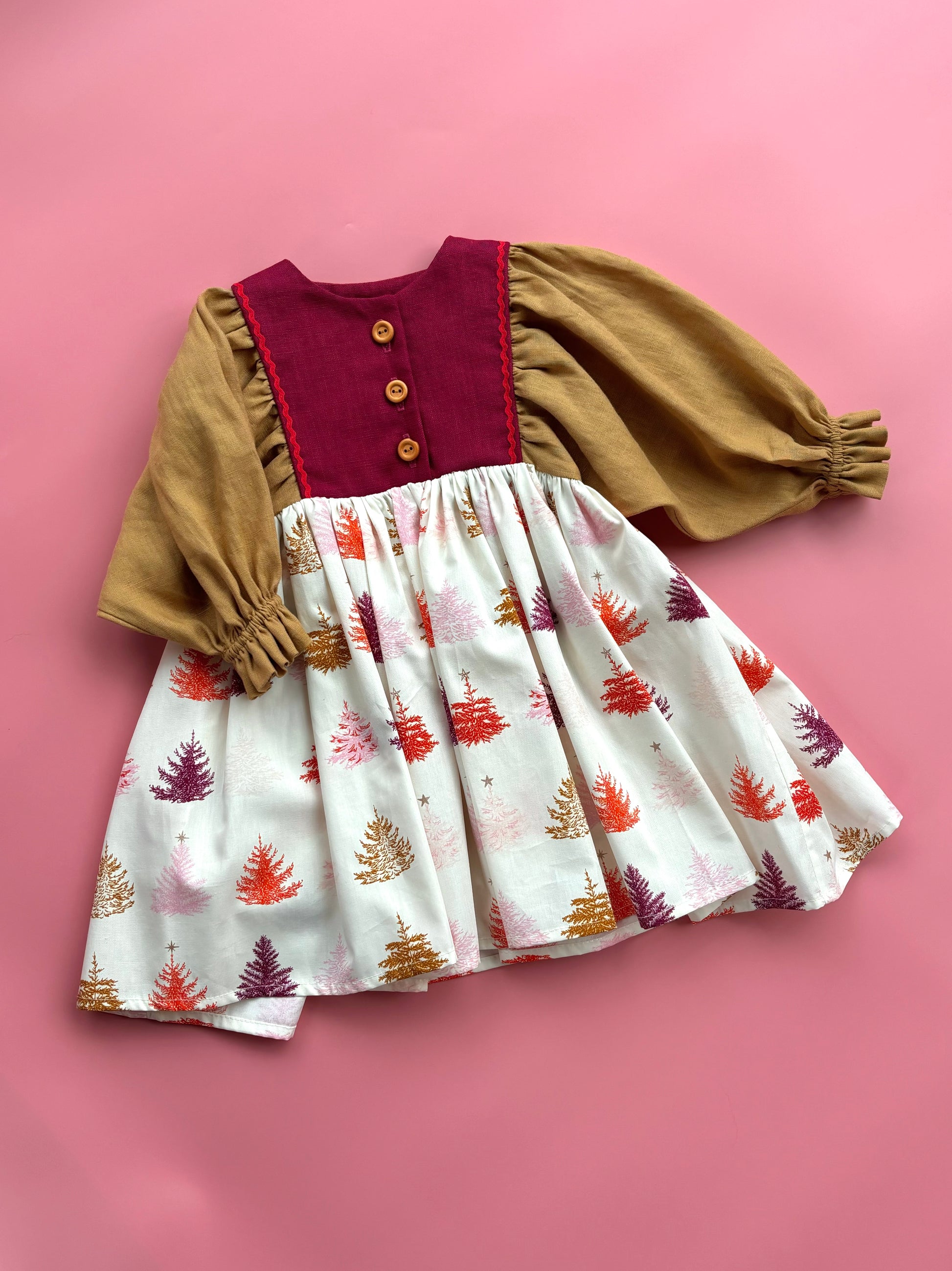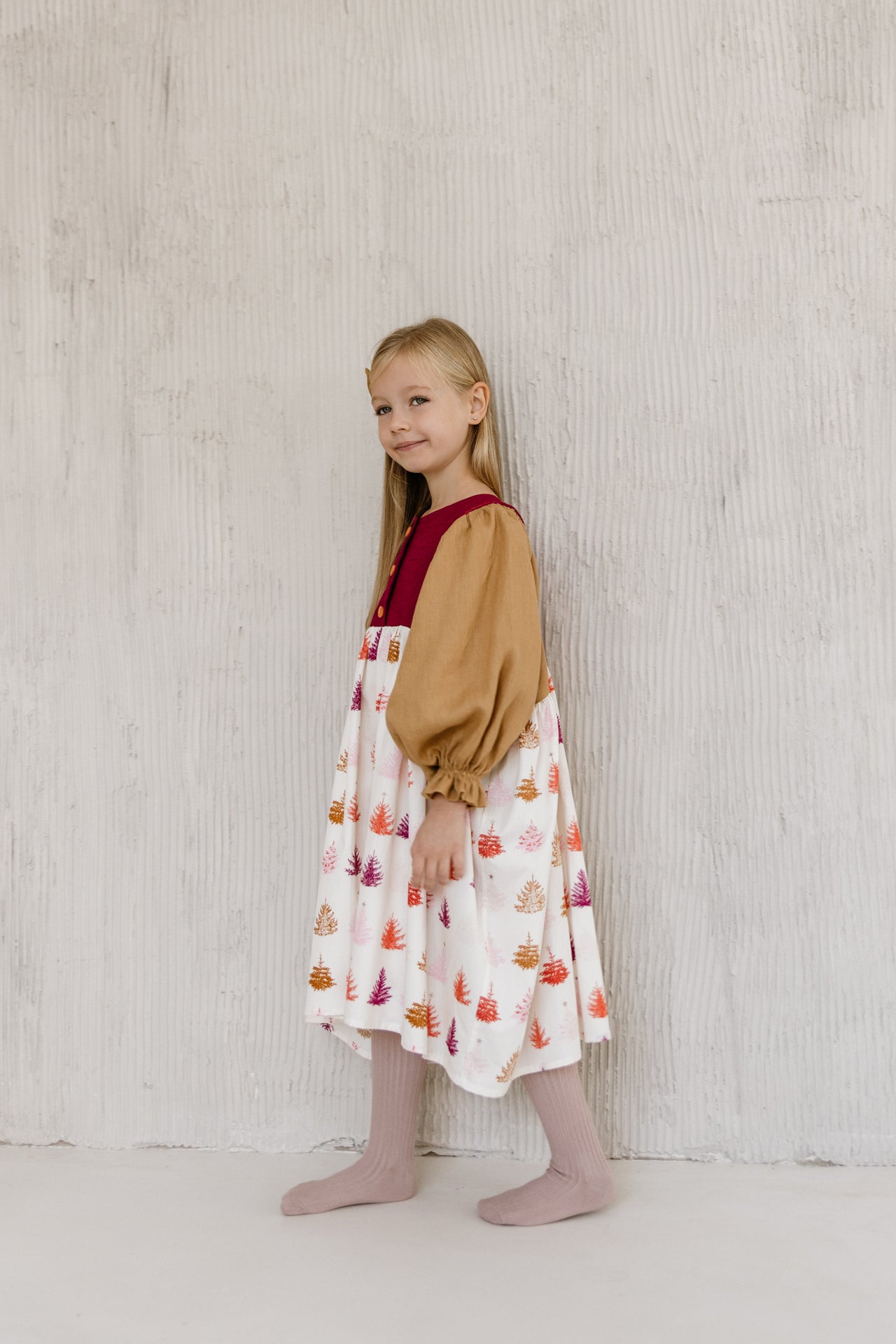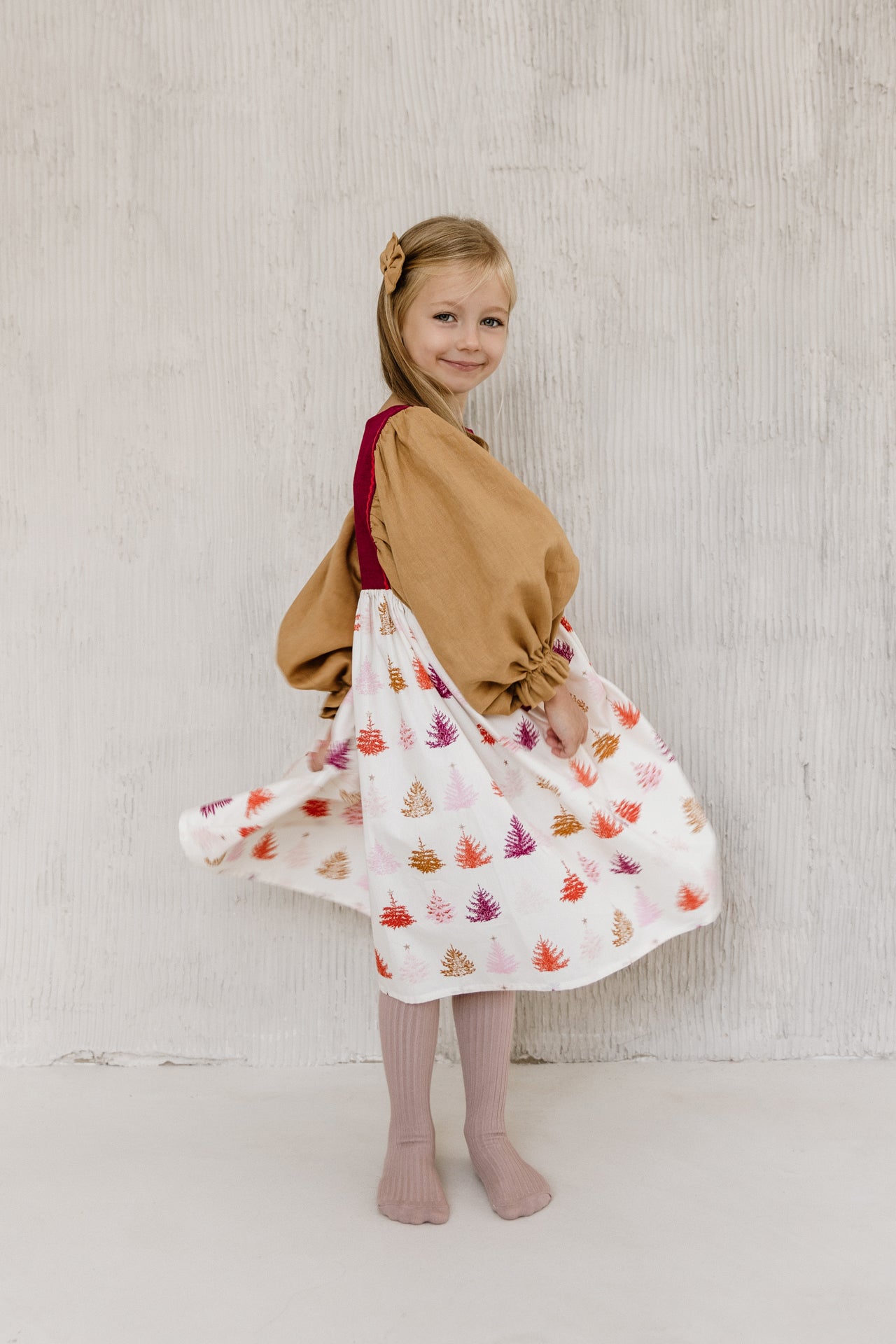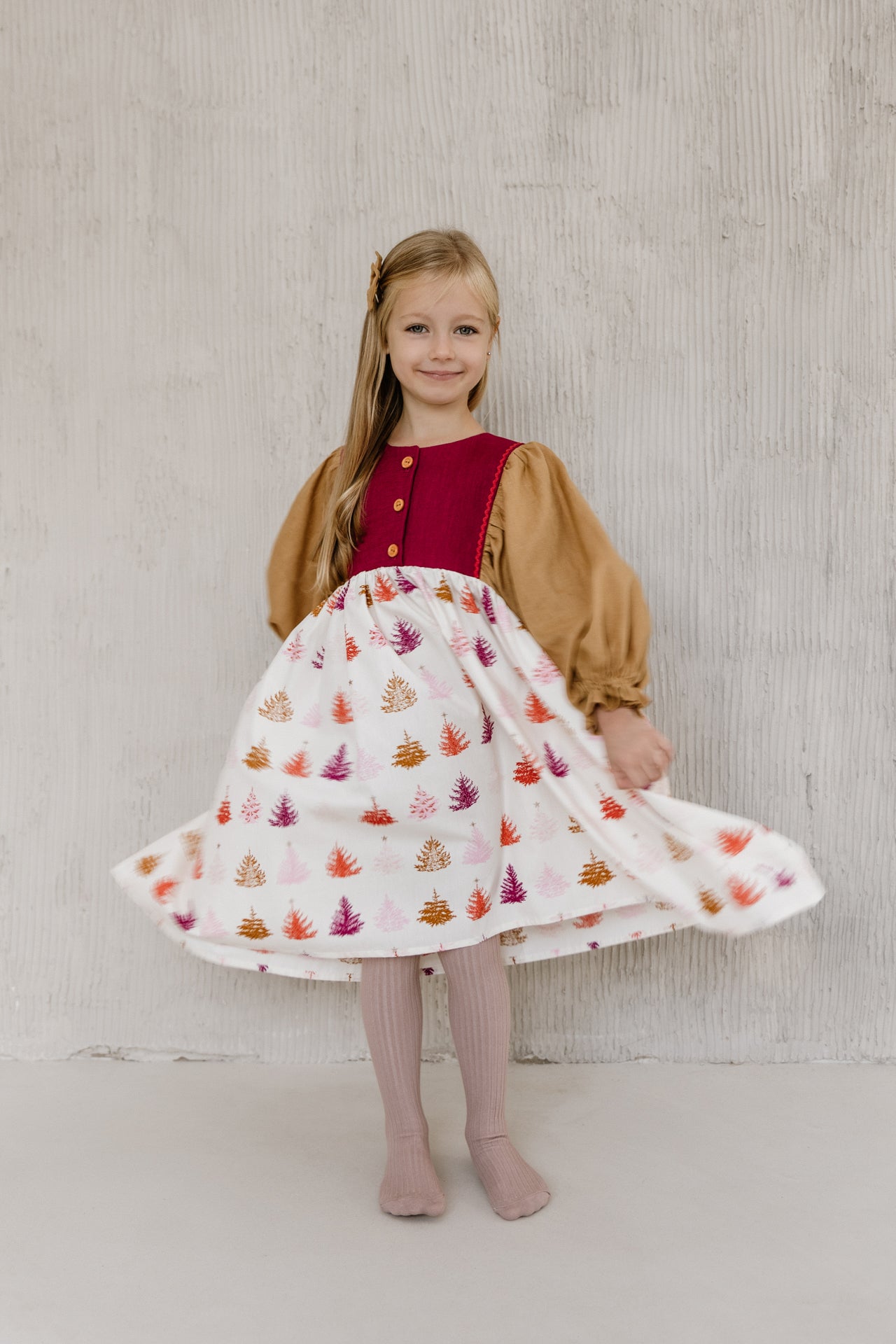 A Tente karácsonyi kapszula kollekciójának csipkével és fodorral díszített ruhácskái igazi ünnepi hangulatot teremtenek. A rózsaszín, lila, fehér és bordó árnyalatok lágy, elegáns megjelenést biztosítanak, míg a finom fenyőfás minta játékosan idézi a karácsony szellemét.