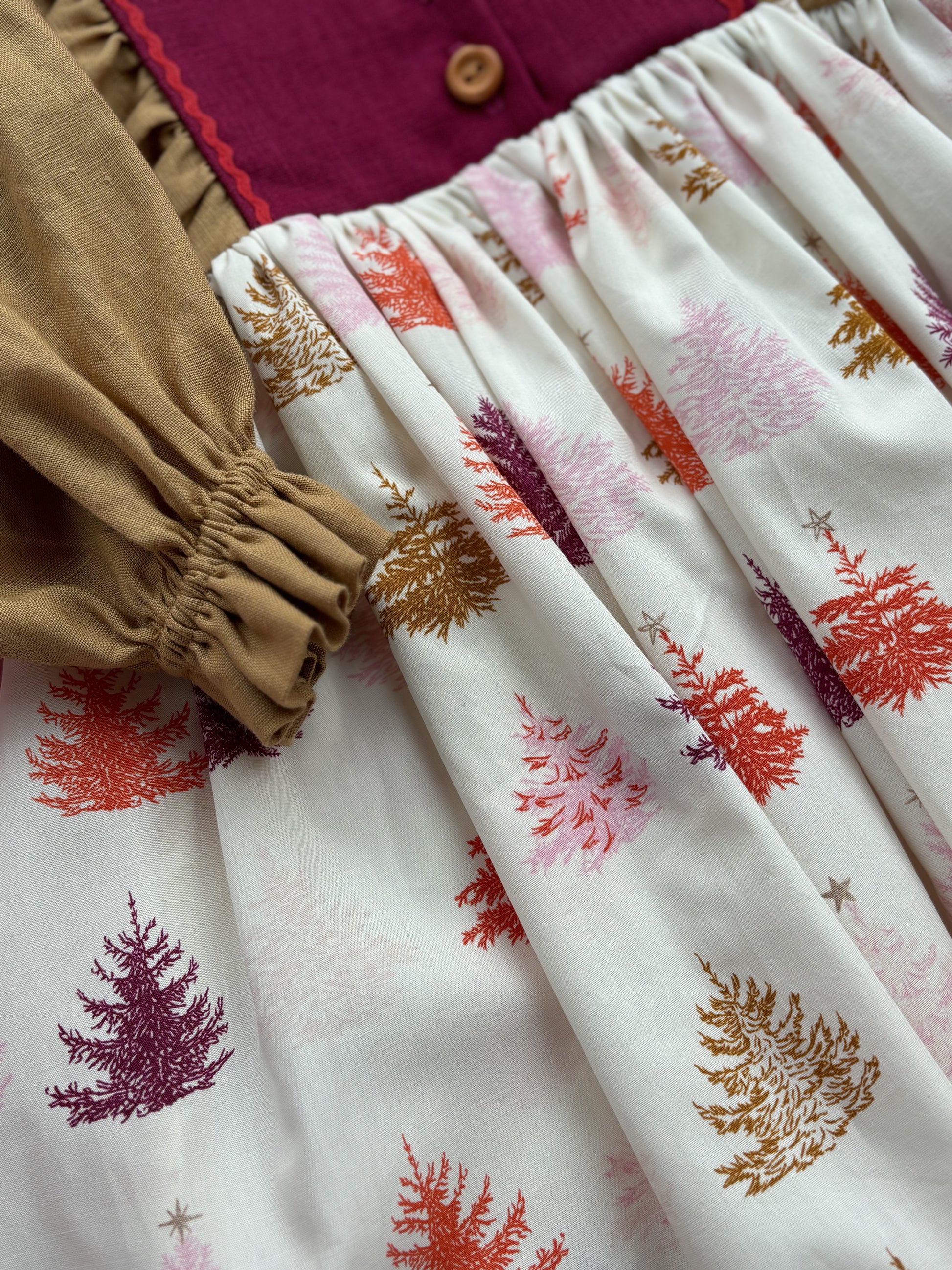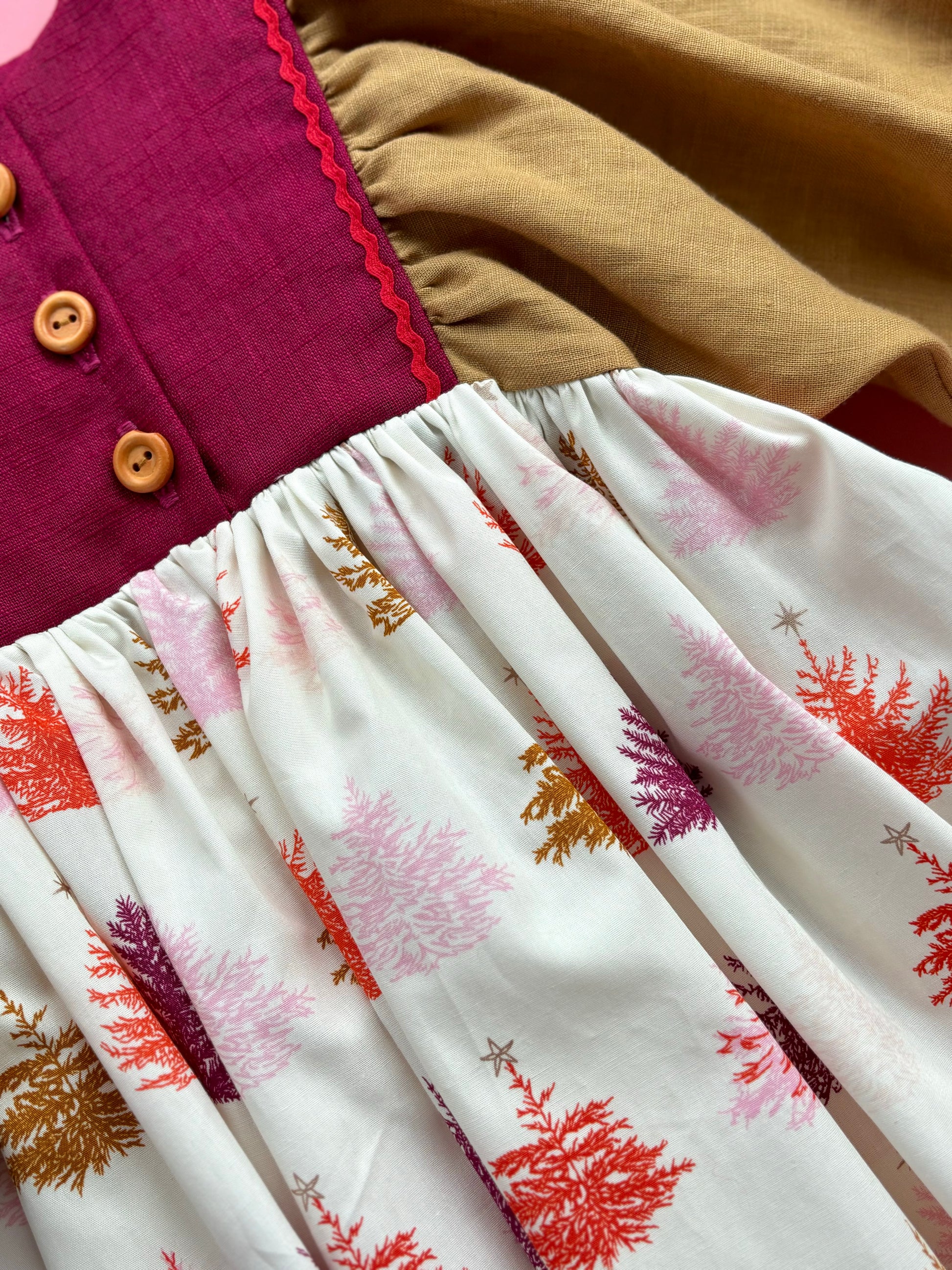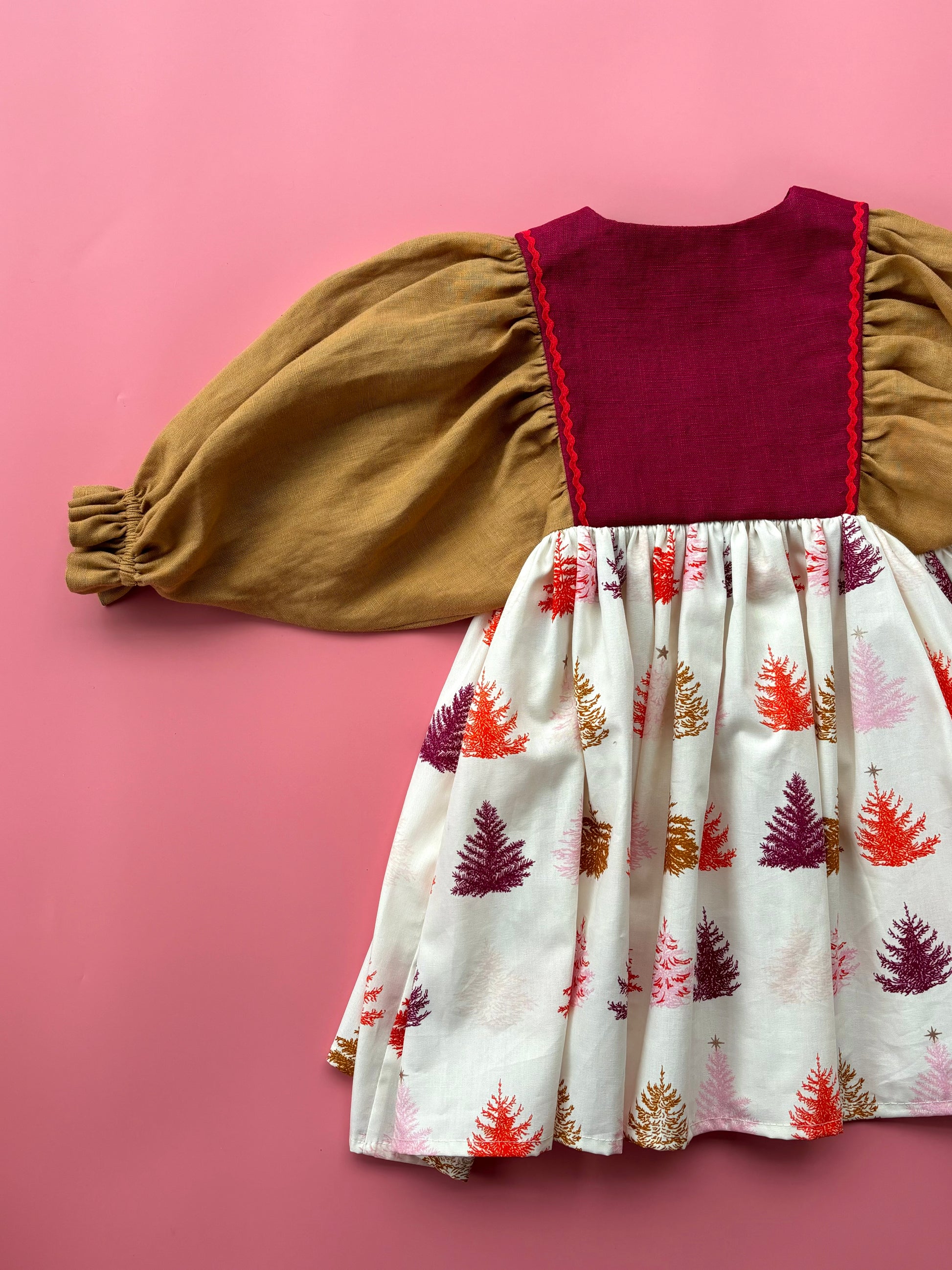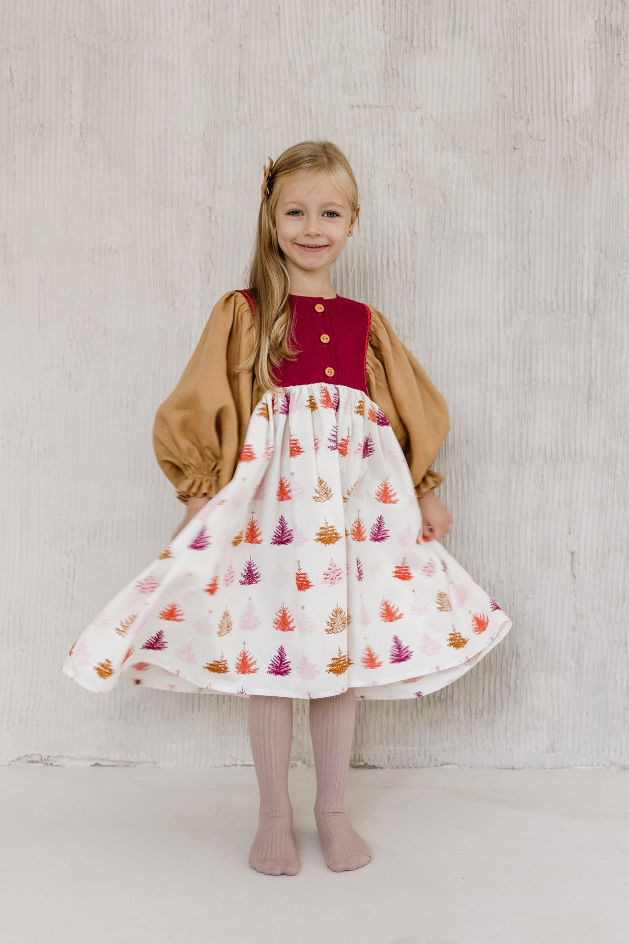 A Tente karácsonyi kapszula kollekciójának csipkével és fodorral díszített ruhácskái igazi ünnepi hangulatot teremtenek. A rózsaszín, lila, fehér és bordó árnyalatok lágy, elegáns megjelenést biztosítanak, míg a finom fenyőfás minta játékosan idézi a karácsony szellemét.