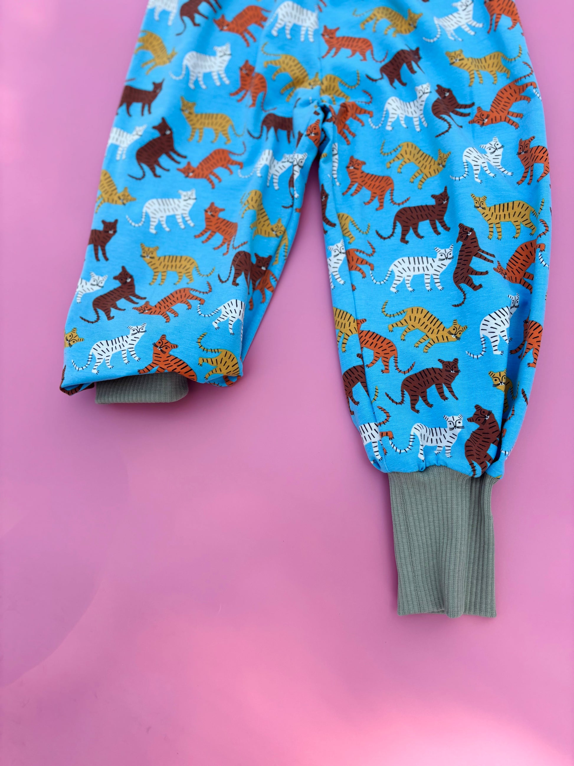 Kényelmes és praktikus cica mintás unisex jersey nadrág, ami a növekedéssel együtt nő. Méretváltó funkcióval és gumírozott derékrésszel készült, így minden mozdulatnál kényelmes marad. Hátán pamut pánttal szegett zseb található. Tökéletes mindennapi viseletre, játszáshoz és oviba egyaránt.