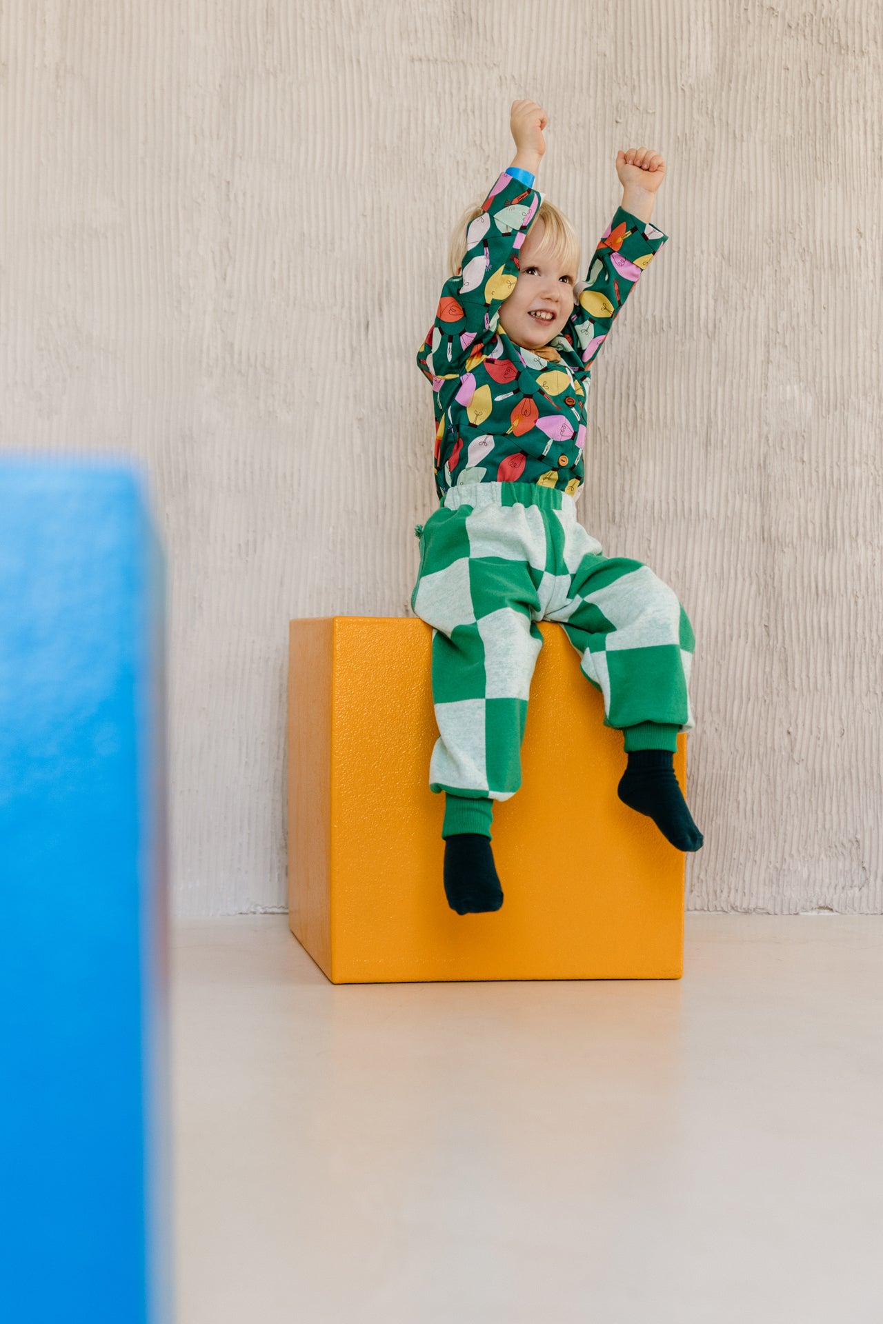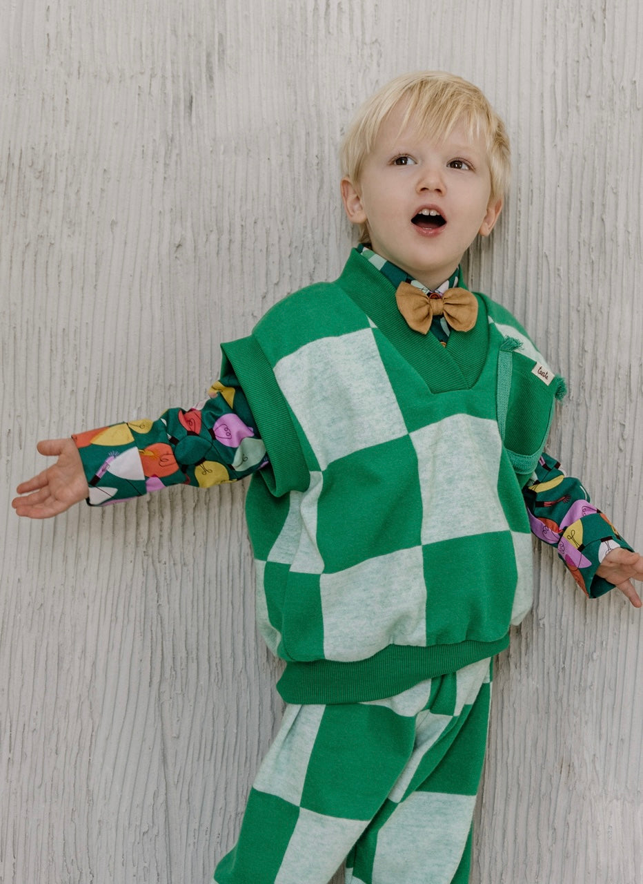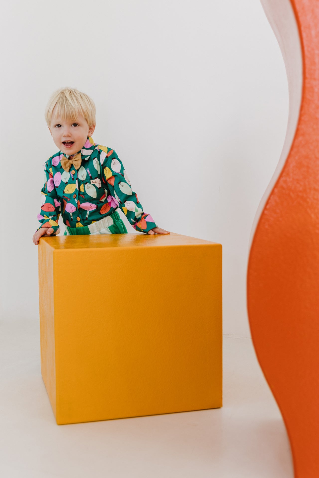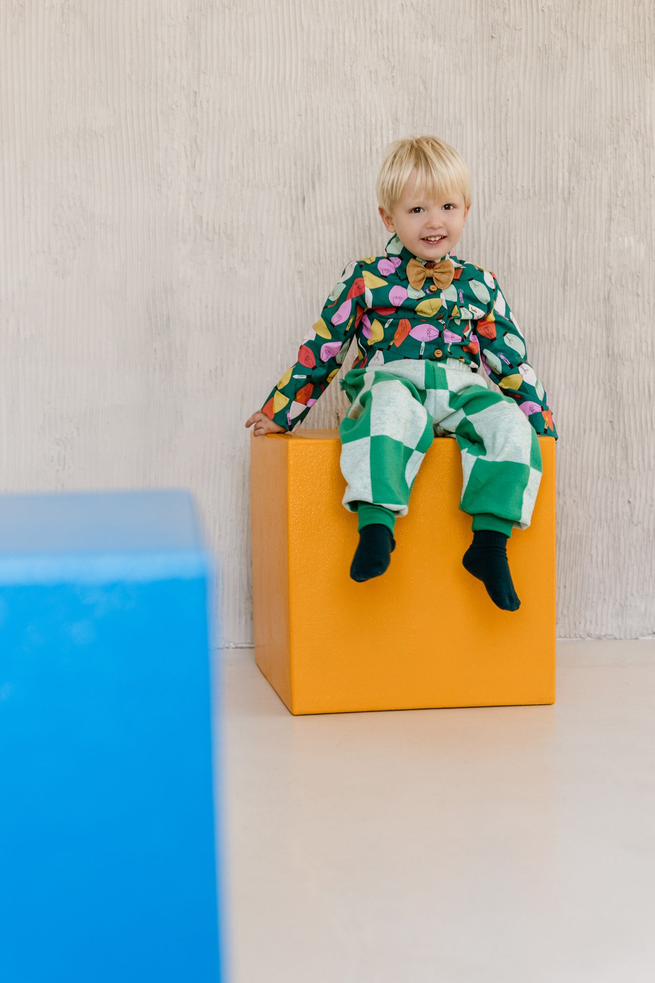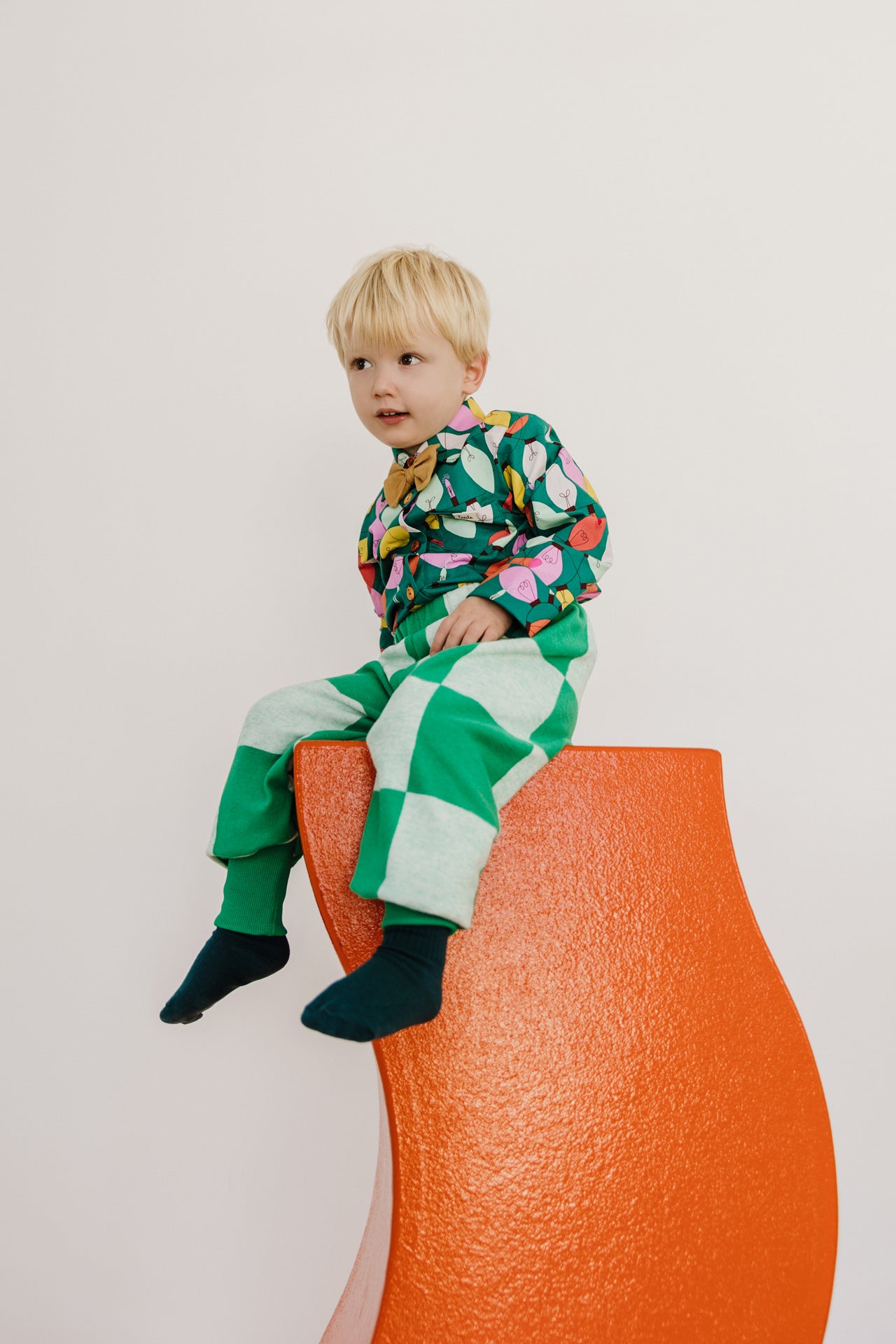 Ez a különleges, zöld alapon színes égősorral díszített ing az ünnepi kollekció vidám darabja. A játékos minta megragadja a karácsonyi hangulatot, miközben a természet ihlette zöld szín elegáns alapot ad. Az ing organikus pamutból készült, így kényelmes és bőrbarát viselet gyerekeknek. Egy igazán egyedi és kedves darab, amely minden gyermek arcára mosolyt csal az ünnepi időszakban.