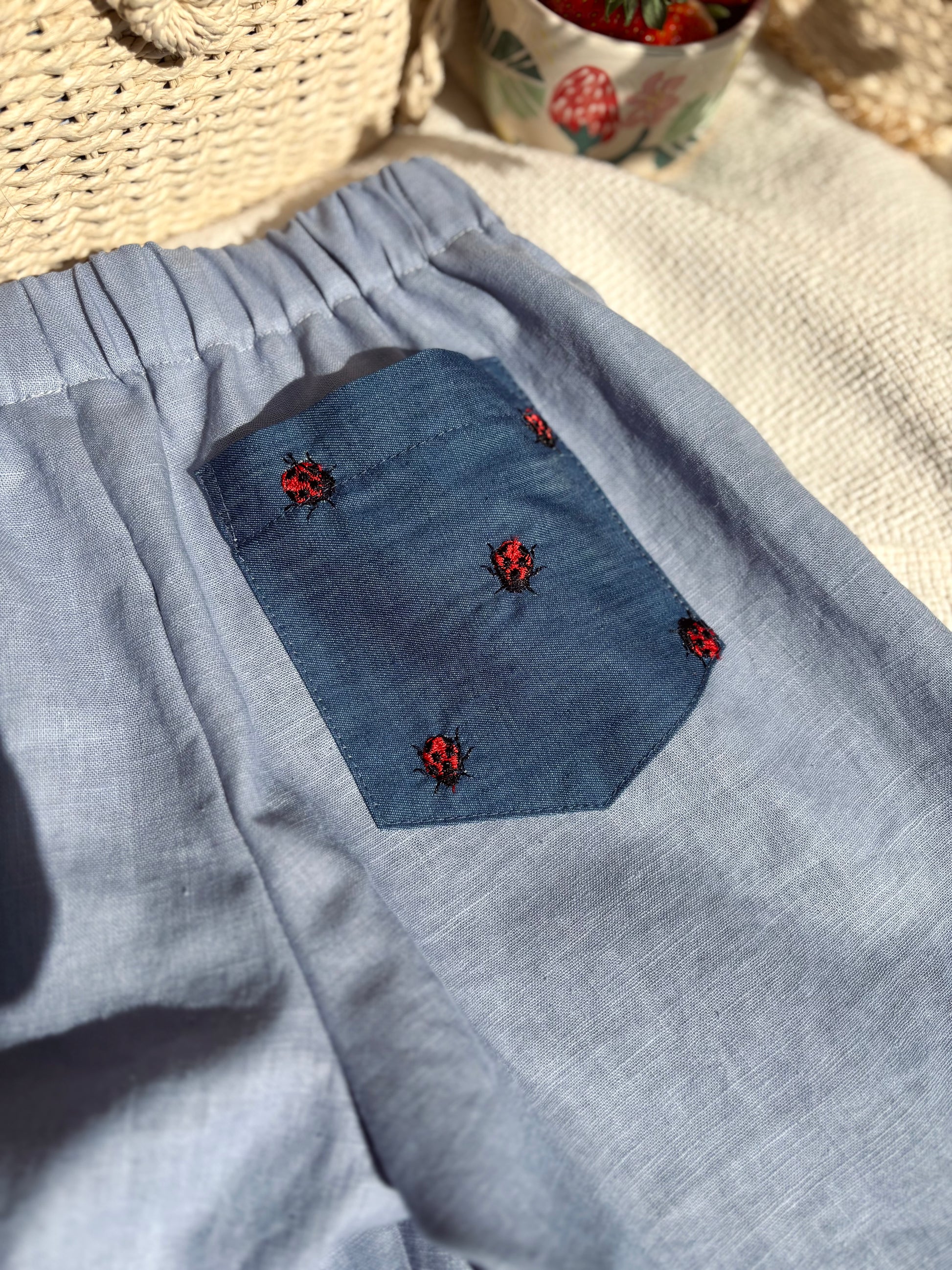 A hátulján elhelyezett hímzett katicás farmerzseb egy apró részlet: pont olyan, mint egy elrejtett kincs, amit csak az igazán figyelmesek vesznek észre.