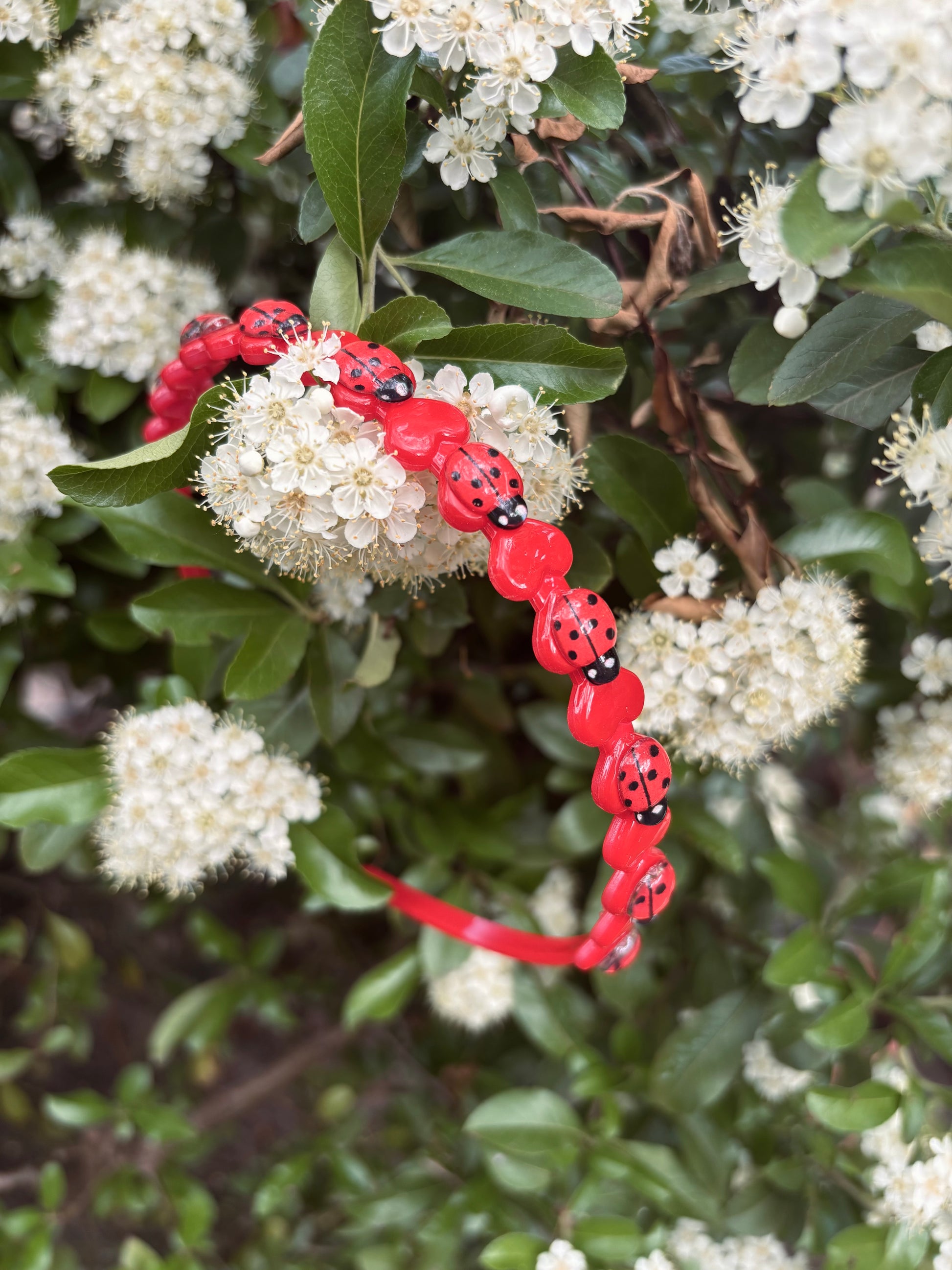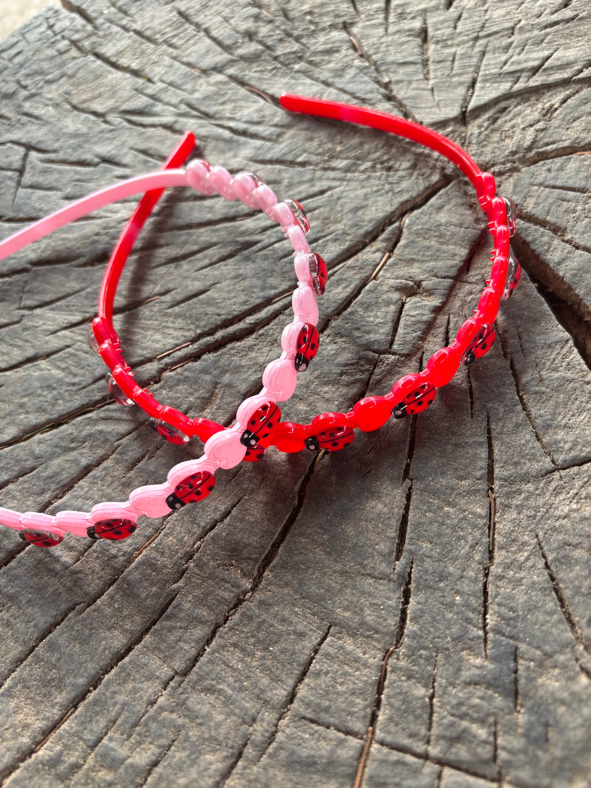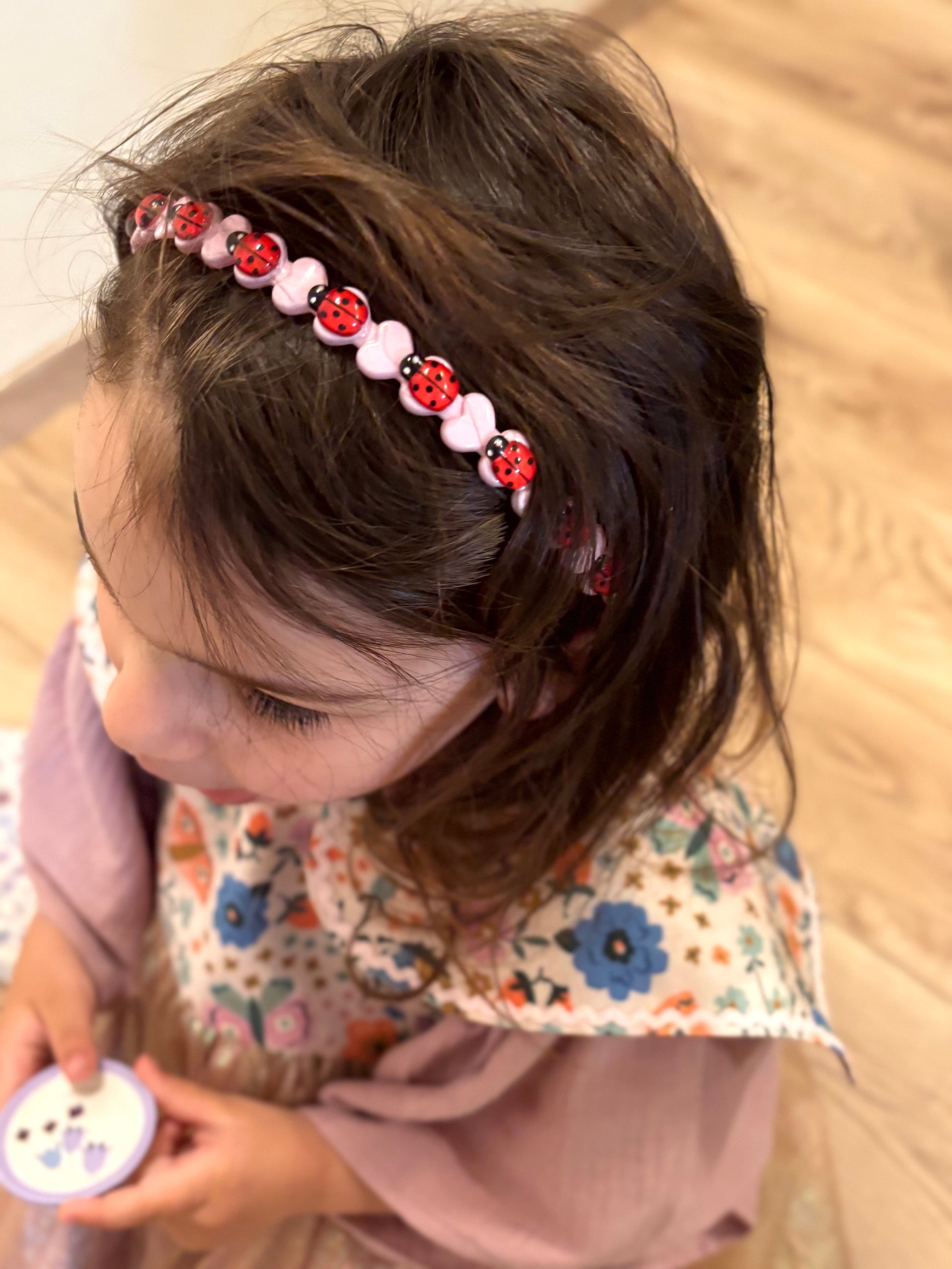 Rózsaszín és piros színben elérhető hajpánt, ami játékosan egészíti ki a kollekció darabjait. A rajta pihenő aprócska katicák vidám kis részlet, amely egyetlen pillanat alatt mesét varázsol a hétköznapokba.