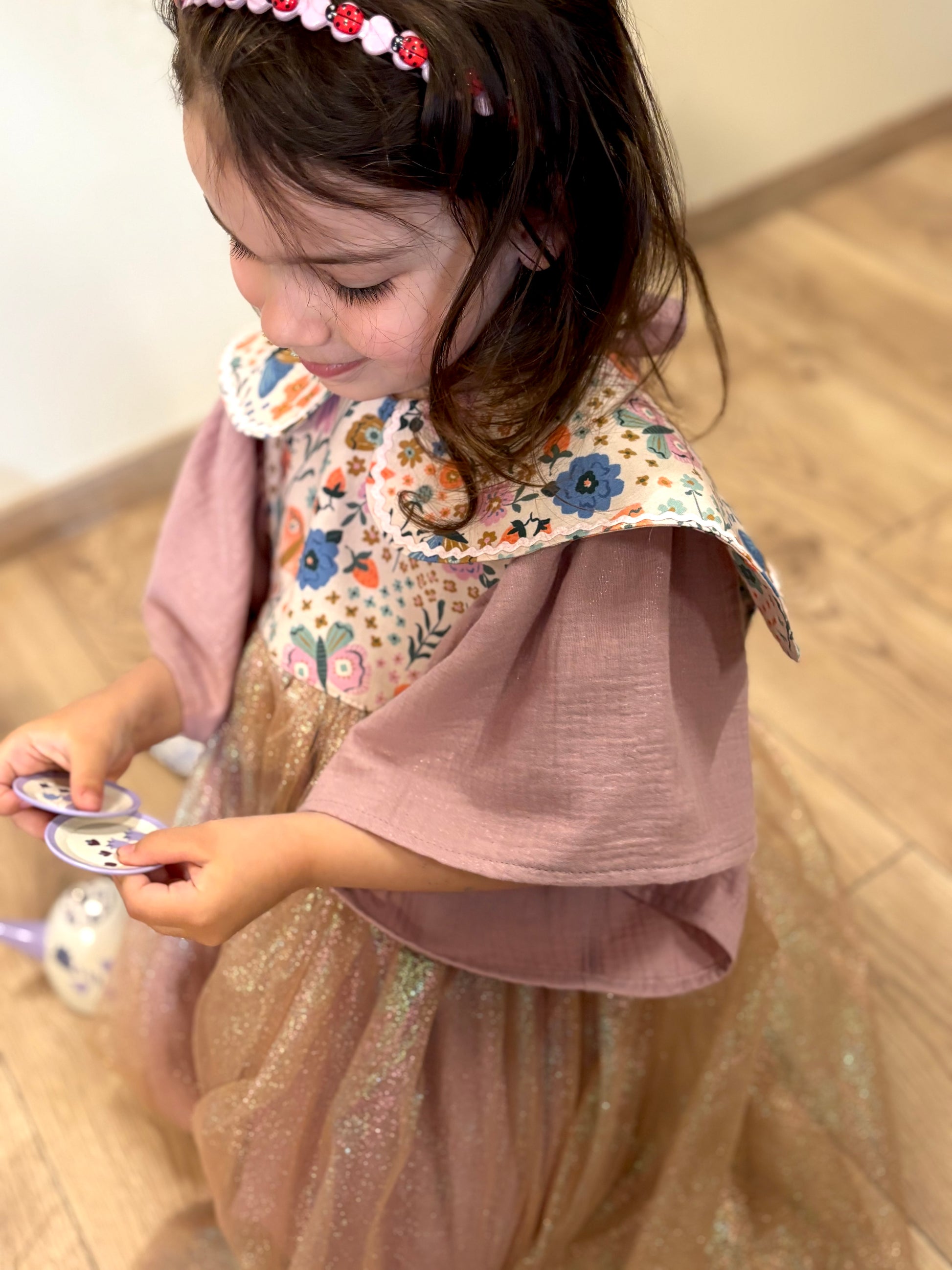 A mezei virágok illatát, a napsütéses délutánokat és a katicabogarak vidám világát idézi meg – mesés formában. Bájos csipkedíszítések, szárnyszerű részletek és játékos szabásvonalak teszik ezeket a darabokat igazán egyedivé — mintha egy-egy aprócska tündér vagy katicabogár bújna meg minden ruhácska hátán.