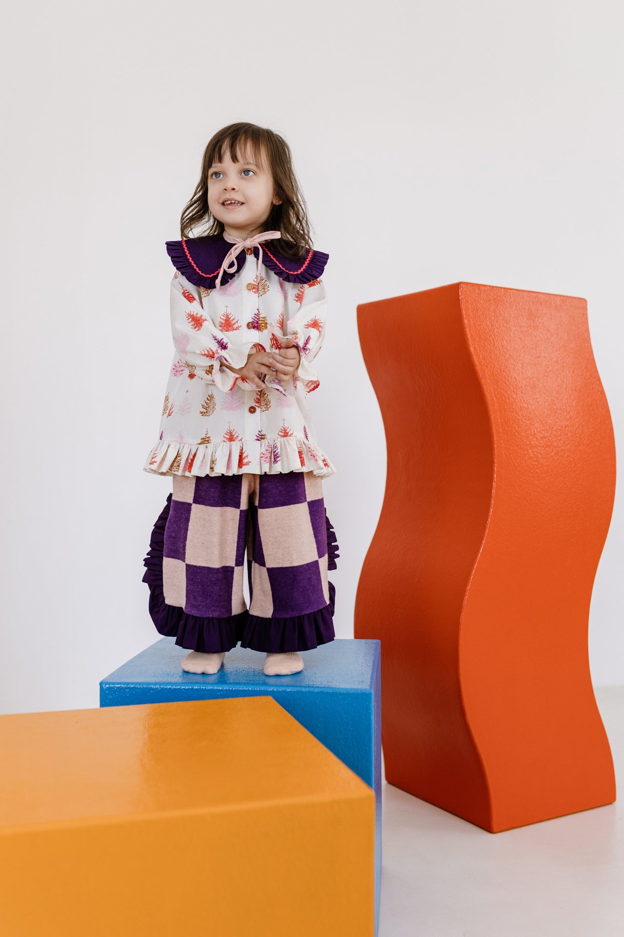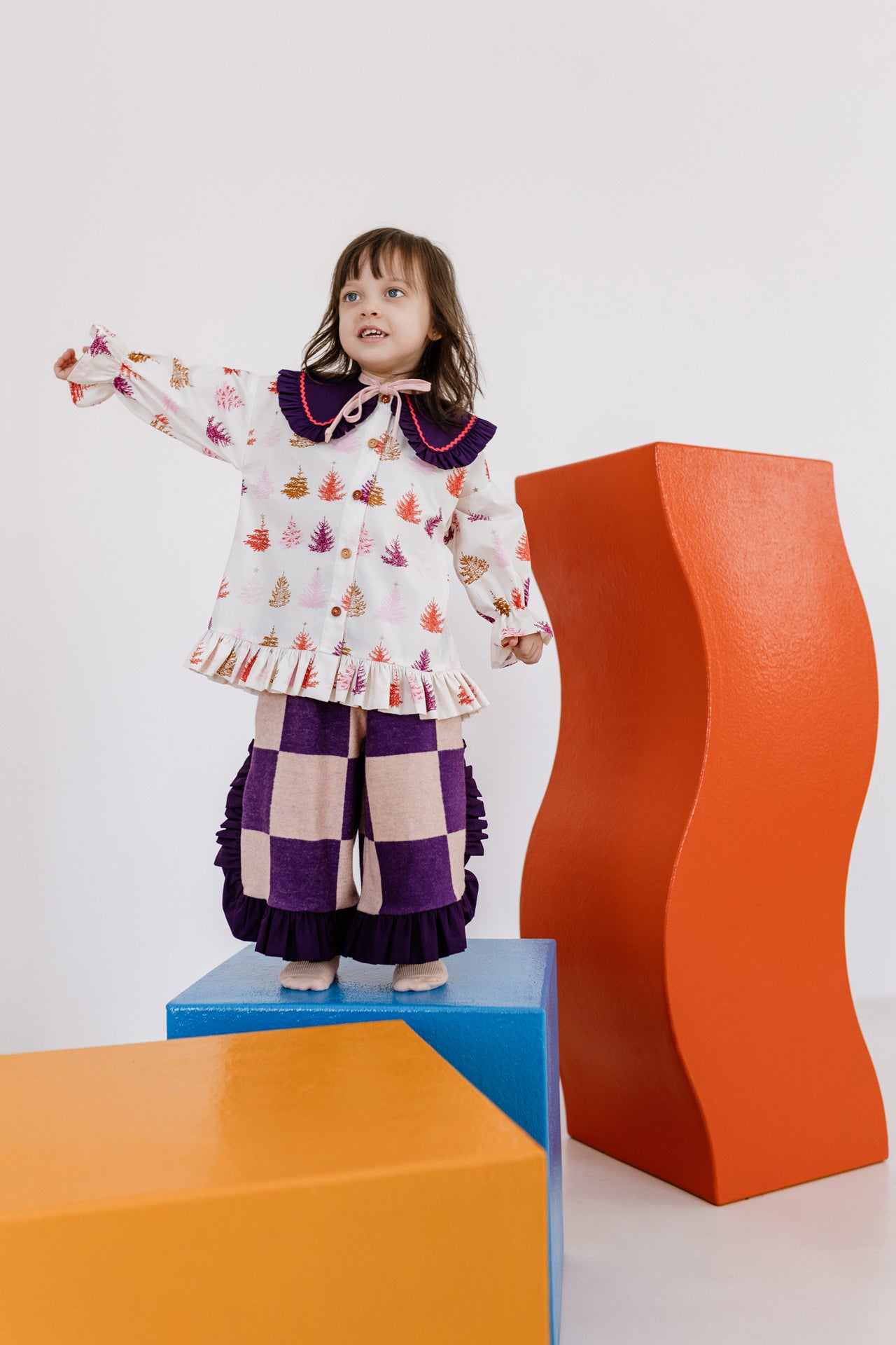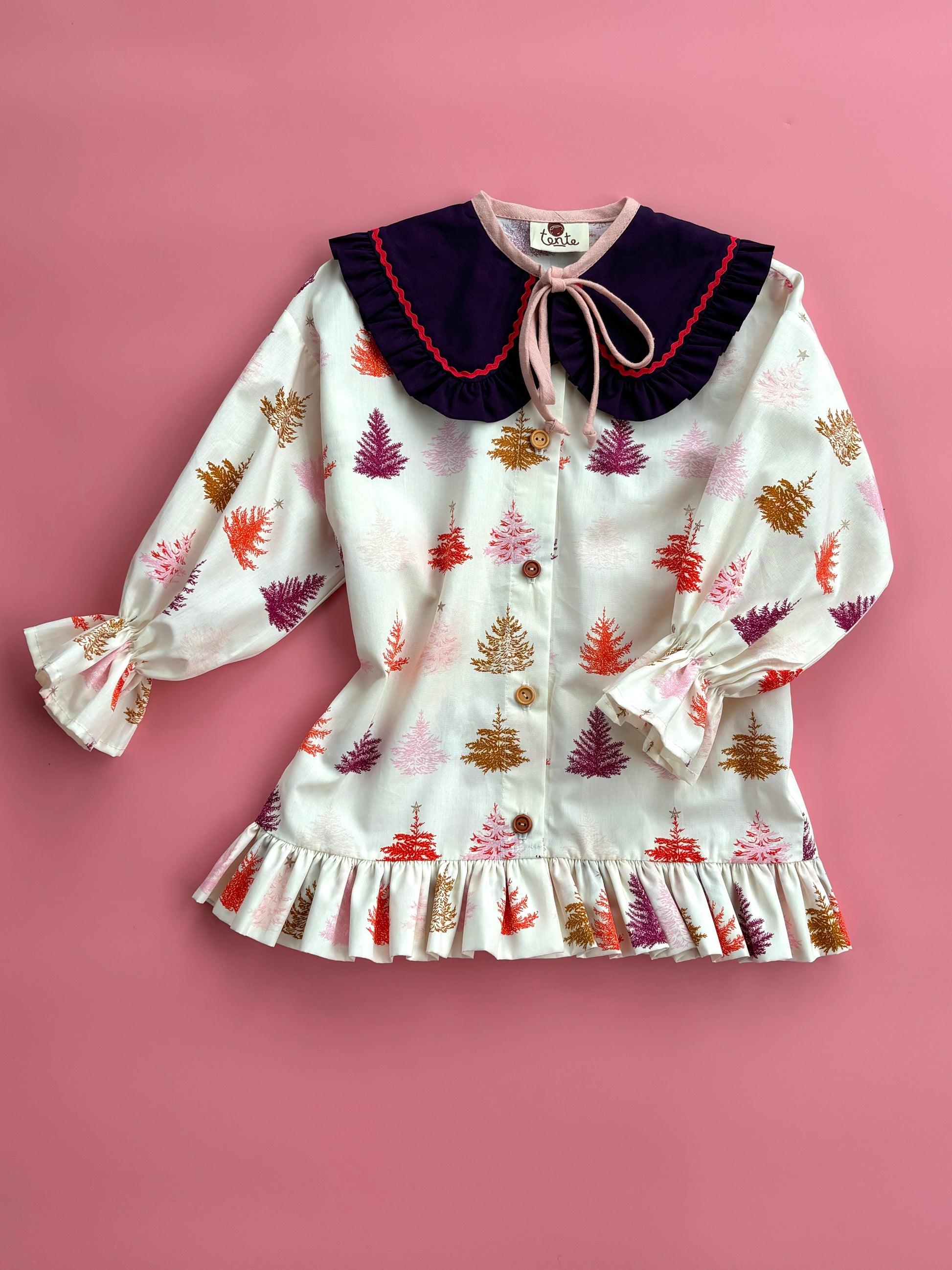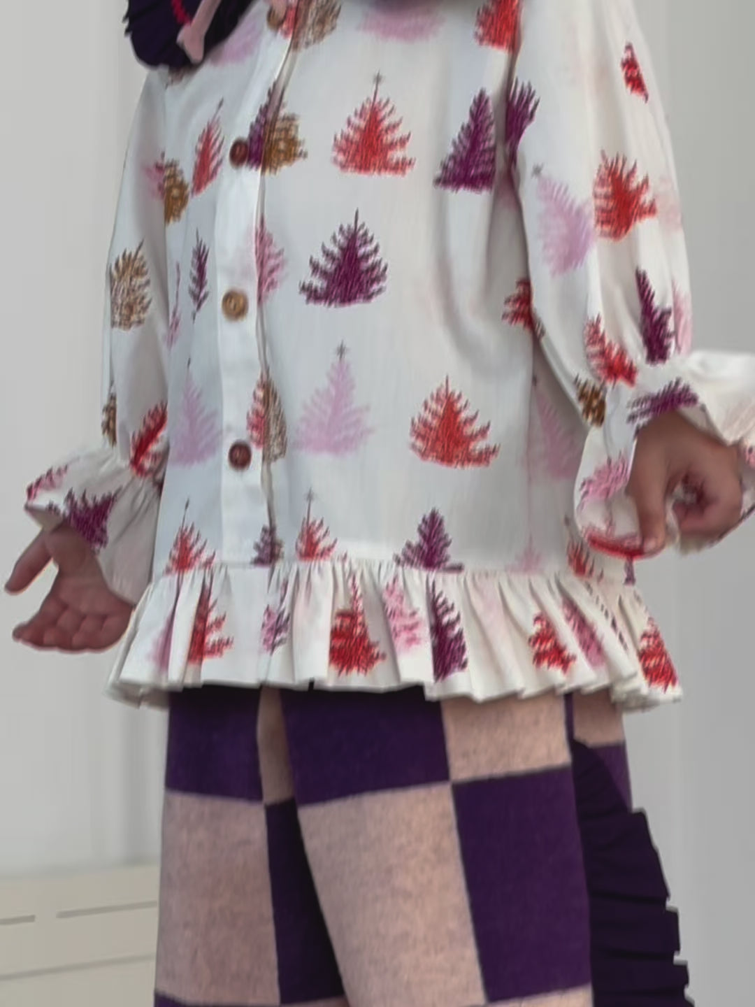 A Tente karácsonyi kapszula kollekciójának csipkével és fodorral díszített ruhácskái igazi ünnepi hangulatot teremtenek. A rózsaszín, lila és fehér árnyalatok lágy, elegáns megjelenést biztosítanak, míg a finom fenyőfás minta játékosan idézi a karácsony szellemét.