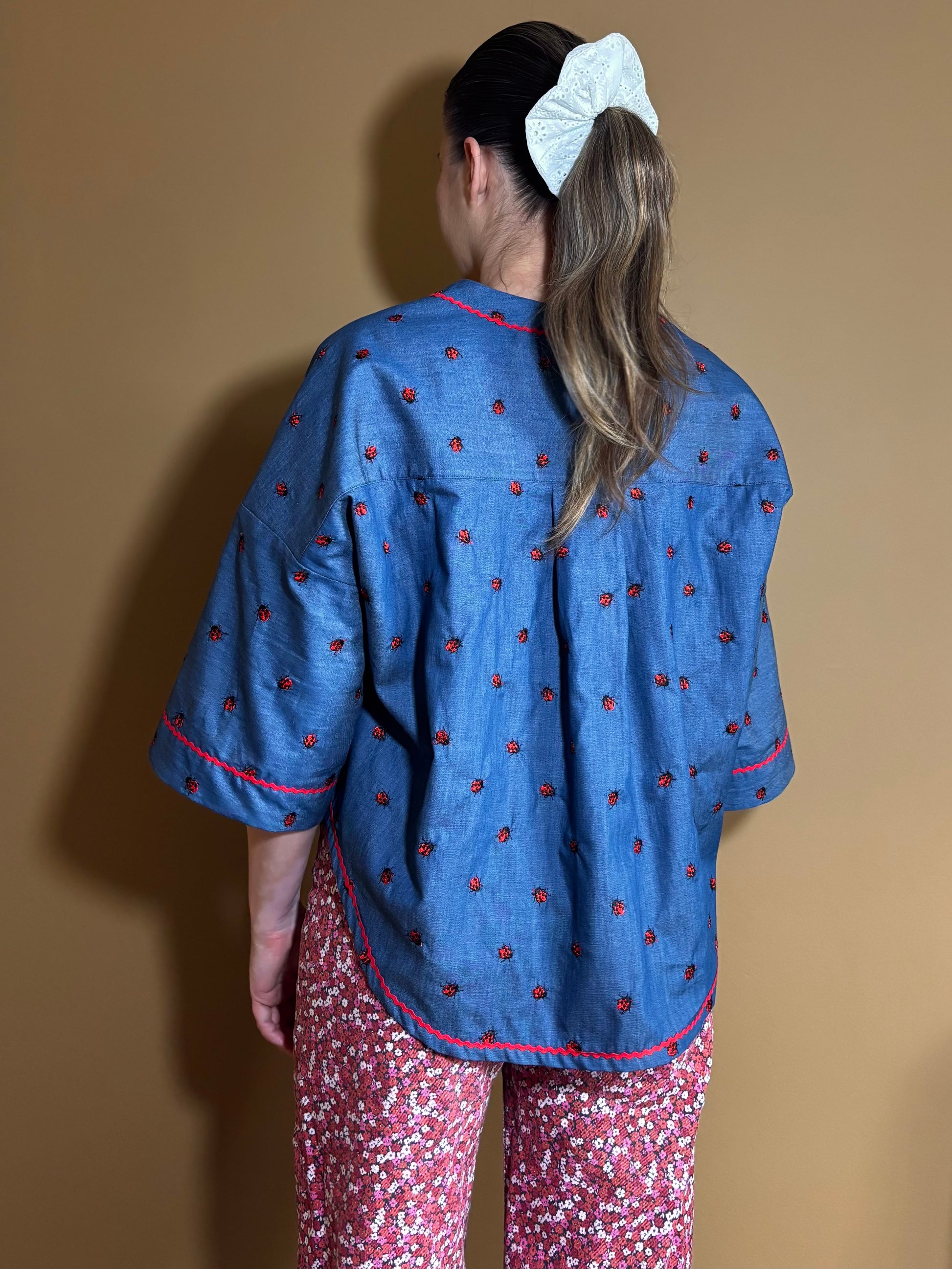 Az ujja felhajtható, így elővillanhat a titkos virágmező – vagy viselheted lehajtva, ha épp visszafogottabb hangulatra vágysz. A lezser, bő fazon gondoskodik a kényelemről minden pillanatban.