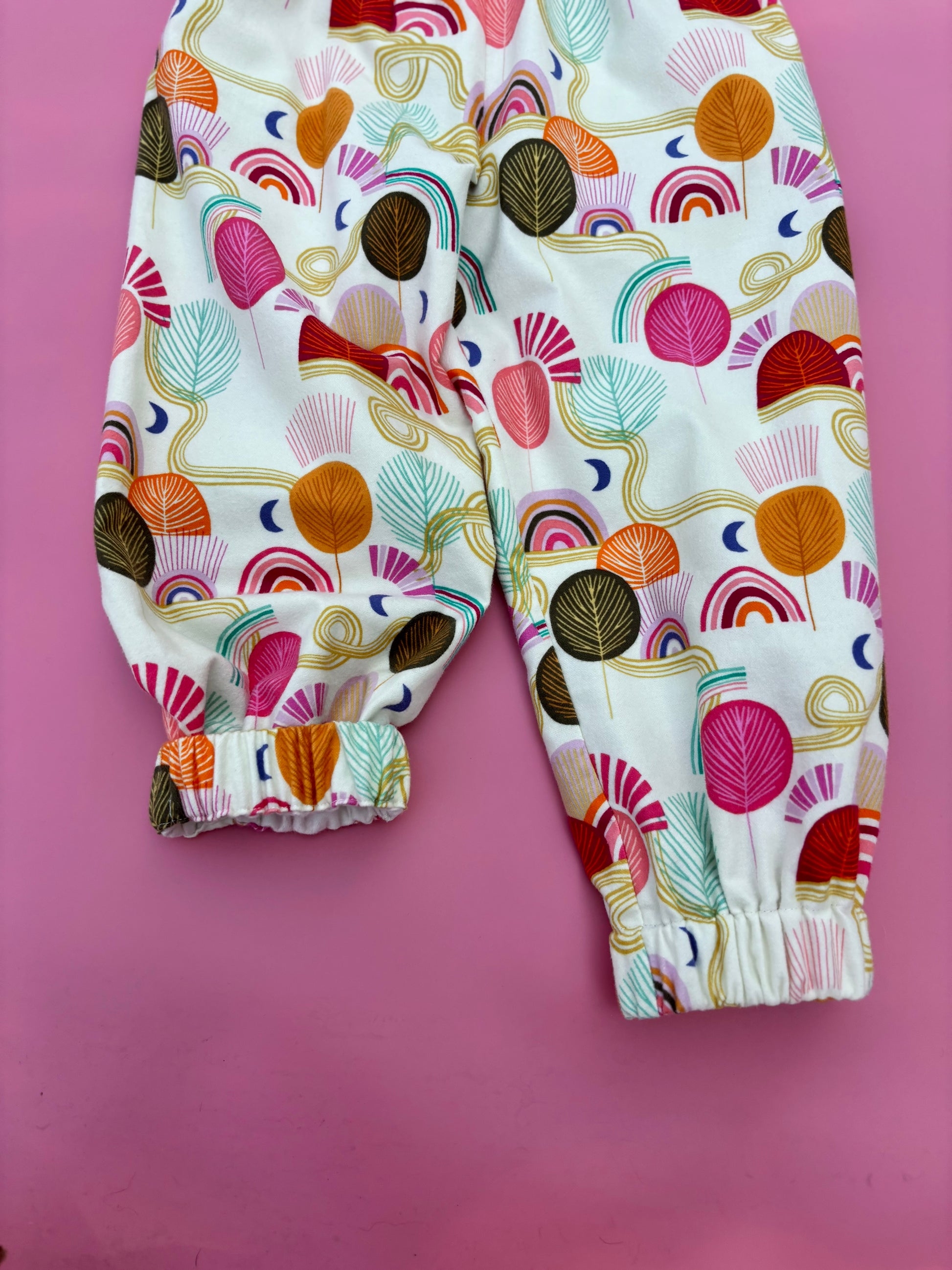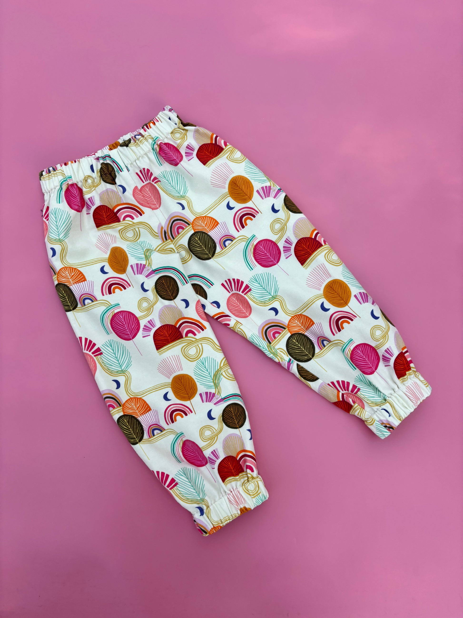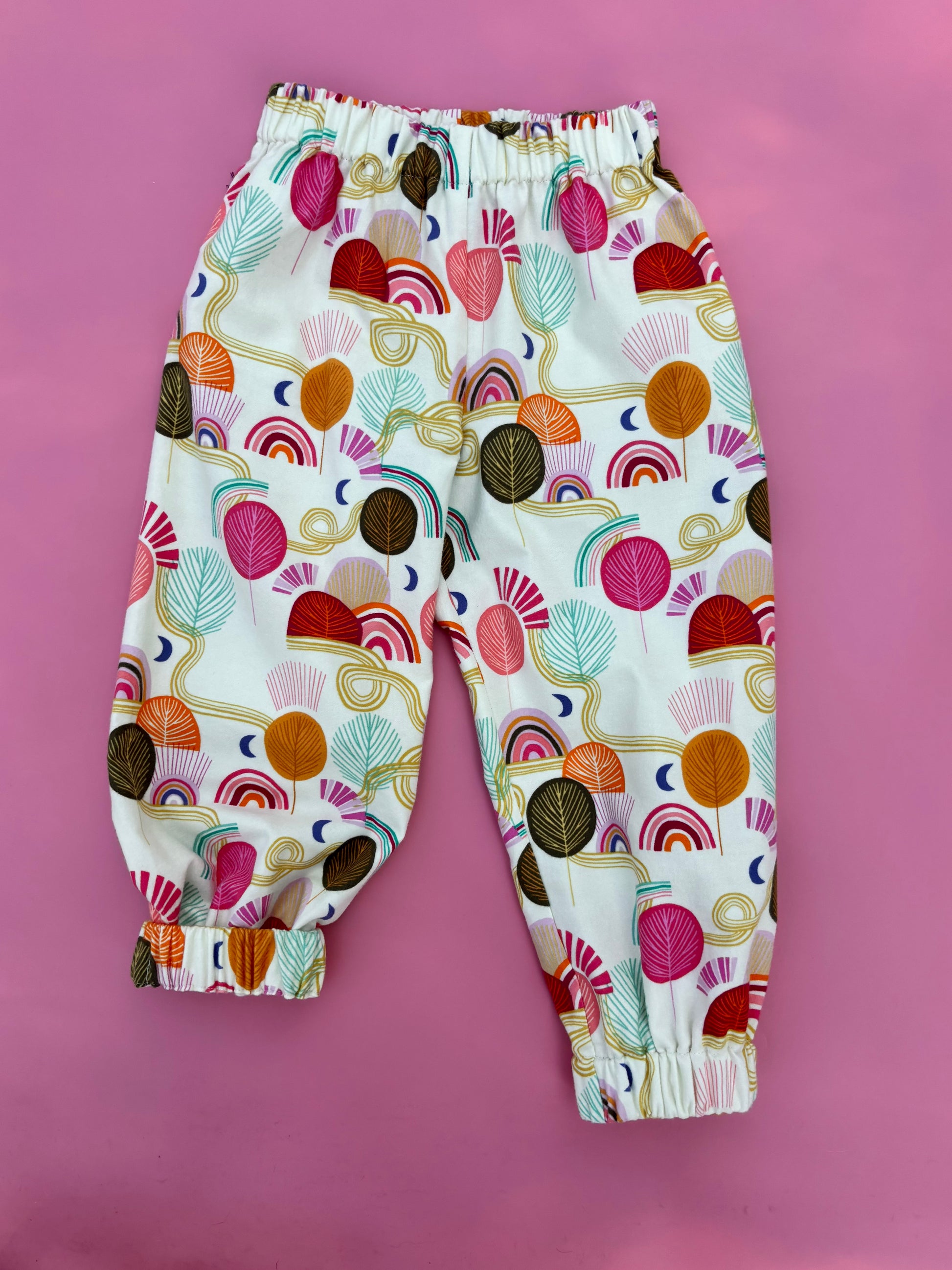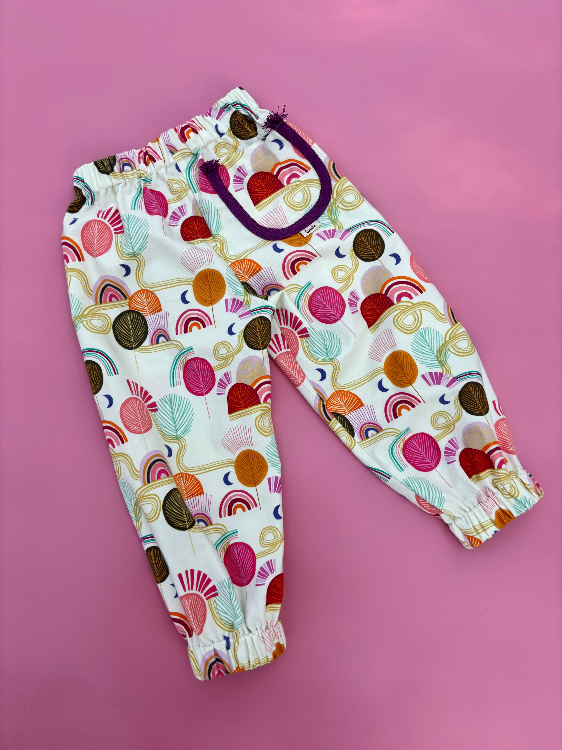 Praktikus és játékos flanel nadrág. Gumírozott derék- és lábszárrésszel készült, így kényelmes minden mozdulathoz. Fel- és lehajtható alja kb. 5 cm-ig igazodik a növekedéshez. Hátán egy pamut pánttal szegett zseb, ami praktikus és játékos részlet. Tökéletes mindennapi viseletre, játékhoz vagy óvodába.