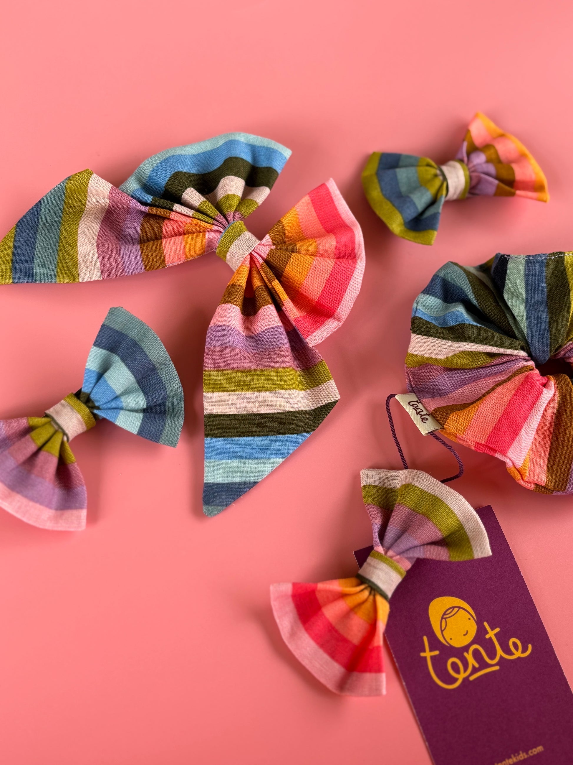 Egy apró kiegészítő, ami azonnal vidámságot és varázslatot hoz minden frizurába! A Tente szivárvány színű csatos masnija játékos, mégis elegáns darab, amely a hét minden napjára színt varázsol. Színei a szivárvány minden árnyalatát felidézik.