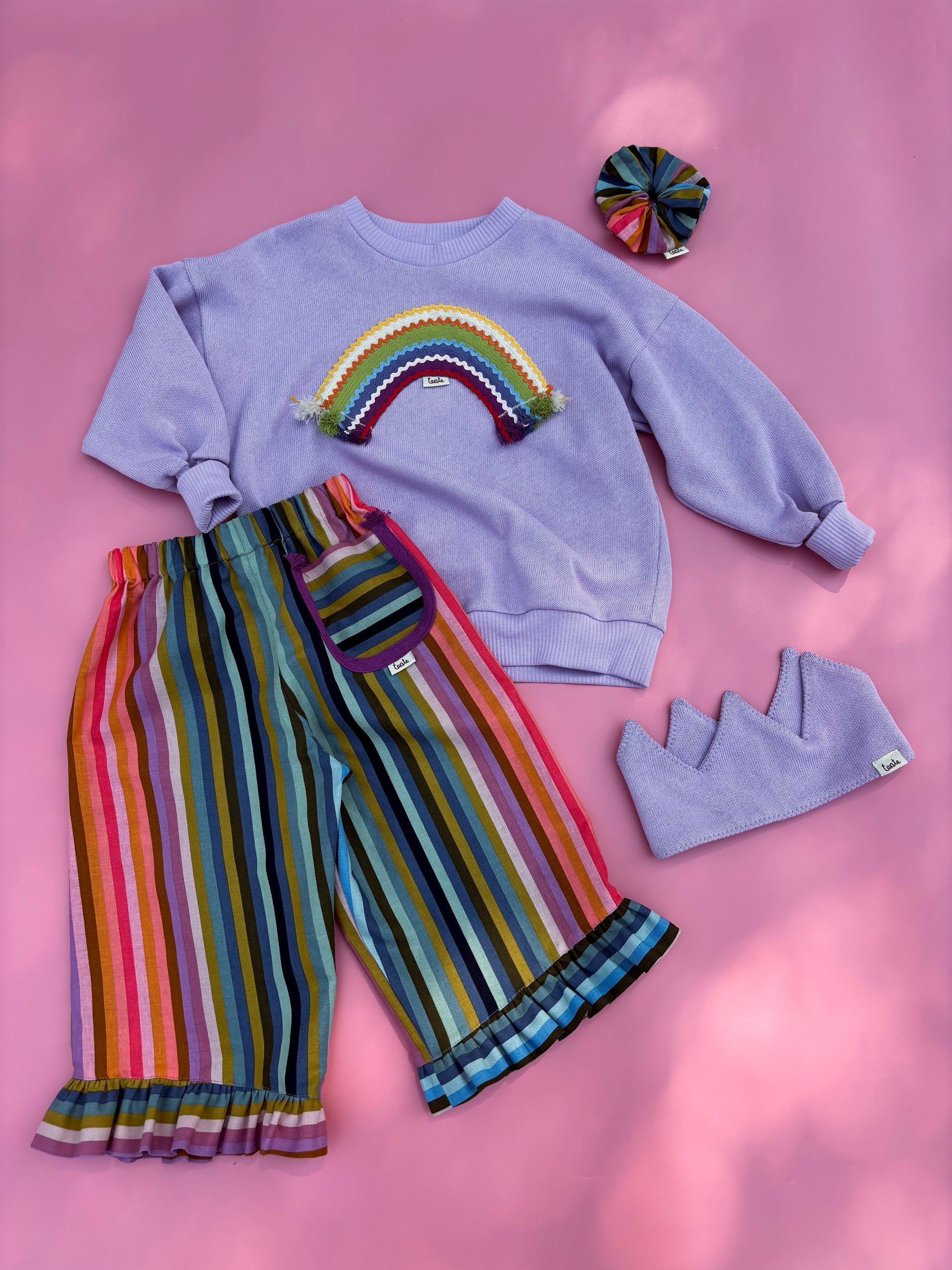 A Szivárványok Kertje egy varázslatos világ, ahol a gyermeki fantázia életre kel! Vidám színek, mesebeli minták, mint a békakirályfi, Csiribí cica és a mosolygó piros alma várják a legkisebbeket. Kislányoknak és kisfiúknak készült, kényelmes, tartós ruhák, amelyek több méreten át is hordhatóak.